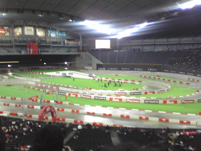 ドーム内にコースをつくり,その中を2台が同時走行!